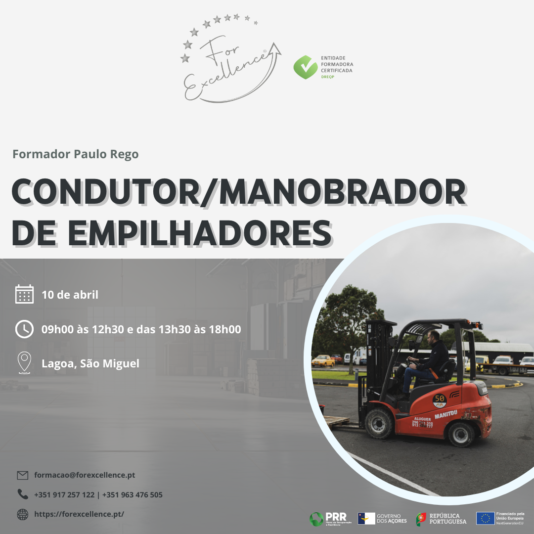 - Exercícios de manobras de carga, de frente, de traseira, com ou sem carga, com o controlo completo da máquina e da carga;